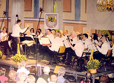 Bühne betrat. Schon als Vorschuß bekamen die 18 Musikantinnen und Musikanten heftig Beifall. Nach längst vergangenem